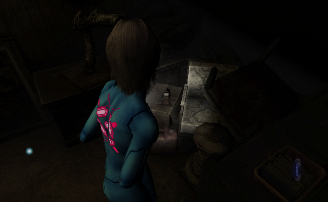 38.(#23) ในทางเดินที่เก็บภาพของมาคากิให้สำรวจหลังกรอบรูปภาพที่วางพาดกำแพงบนพื้น จะพบกับตุ๊กตา